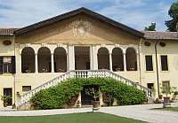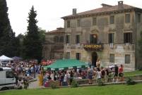 ‚Die haben das im Griff!’ ist mein erster Eindruck, als der endlose Strom von Autos am Ortseingang staufrei auf einen der provisorischen Parkplätze geleitet wird. Nur Minuten später stehe ich im Garten der „Villa Venier“ und versuche zweierlei: Atmosphäre genießen und wach werden. Die „Villa Venier“ aus dem 17. Jahrhundert umfasst mehrere nicht mehr zu Wohnzwecken genutzte Gebäude in einem wunderbar schattigen Garten. Am Tor der Einfahrt liegen jetzt die Matten der Zeitnahme und am anderen Ende, kurz vor dem Haus, spannt sich das Zielportal über den Weg. Ich „lustwandele“ ein wenig im Garten, mische mich unter das Gewimmel der schon Wachen, versuche Sinn und Auftrag diverser Stände zu enträtseln, schaue ein wenig bei der Ausgabe von Startnummern zu und trolle mich eine Viertelstunde vor dem Start auch mal in den hinteren, verschwiegenen Bereich des Gartens, der sich über einen Hang erstreckt …