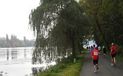 Langsam finde ich Gefallen an diesem Lauf. Schuld sind Dieter und der wunderschöne Uferweg. Dieter, weil er läuft wie ein Uhrwerk, wodurch sich meine Unterstützung auf gelegentliches Errechnen des Zeitdurchschnitts beschränkt. Der liegt einstweilen konstant bei 5:23 min/km. Noch mal Dieter, weil er zu jenen angenehmen Laufkameraden zählt, mit denen man sich gern über diese oder jene Beobachtung austauscht, mal ernst, dann wieder heiter, der ansonsten die „Sache“ ebenso gerne schweigend genießt wie meine Wenigkeit. Und der Weg vermag nun wirklich zu begeistern: Rechts gesäumt von dichtem Laubwald, eine Art grün grundierte Leinwand, auf der der Maler „Herbst“ mit warmen Gelb- und Rottönen Akzente setzt. Weit ausladende Äste formen nicht selten einen natürlichen Baldachin, unter dem es sich herrlich laufen lässt. Dazu links der Kontrast des Seeufers, ein meist schmaler Grünstreifen, zuweilen von einzelnen Baumgestalten malerisch in Szene gesetzt. Den tiefsten Eindruck hinterlassen Trauerweiden, deren langes, wie ein schwerer Vorhang anmutendes Astwerk knapp über dem stahlgrauen Spiegel des Sees endet.