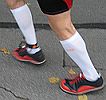 Erstmals bleibt Dieter ein paar Schritte zurück, holt jedoch rasch wieder auf. Das muss nichts bedeuten. Wir haben das Sperrwerk fast erreicht, als mir ein Mit-Marathoni zu einem neuen Superlativ verhilft: Er trägt die merkwürdigsten Schuhe, die ich je an Läuferfüßen sah. Ich grübele: ‚Sind das überhaupt Laufschuhe??’ Ich meins nicht abwertend, aber vorne noch was breiter und sie passten mit ihrem auffälligen, schwarz-roten Kontrast exzellent zu einem Clownskostüm. ‚Sind das wirklich Laufschuhe??’