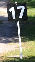 Streckendistanz und bekomme nur vage Auskunft: „Irgendwas mit 13 oder 14 Kilometern“. Ein kurzer Abstecher zu einer 50 m entgegen Laufrichtung aufgepflanzten Tafel spricht eine klare, jedoch ebenso wenig verlässliche Sprache: Die angezeigte „13“ bezieht sich auf den Marathon. Dessen Start erfolgte zwar auch in Wieck, jedoch in einer anderen Nebenstraße und Himmelsrichtung.