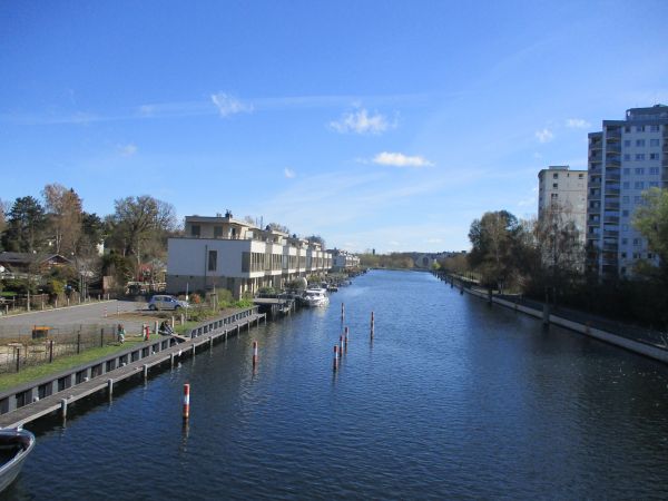 Wohnlage. Vor allem Havel-seitig, mit Blick und Zugang zum Wasser. Ich halte mich am Ufer oder genauer gesagt: diversen Ufern, von denen ich alsbald nicht mehr zu sagen weiß, ob sie der Havel oder einem der von ihr abzweigenden Seitenkanäle und ehemaligen Hafenbecken zuzurechnen sind. Mehrfach die Richtung wechselnd erkenne ich diverse Ecken wieder, bin aber mindestens einmal sicher in den Vorjahren eine andere Route genommen zu haben. Beinahe mit