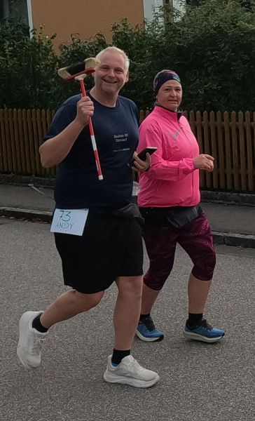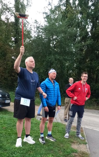 Lose beieinander streunen wir die 50 Meter zur Startlinie und halten uns bereit. „Wir“ schließt Andy und seine Frau Kristina ein, die als Besenteam drei Runden kehren werden. Auch Roland, ein guter Bekannter, gehört zur Meute, wir haben uns vorab schon begrüßt. Darüber hinaus kommen mir ein paar Gesichter, vermutlich von den Naabtal Ultras, bekannt vor. Der Zeitnehmer zelebriert den Countdown, das Feld setzt sich mit lautem Hallo in Bewegung. Viele lieben den Austragungsmodus des