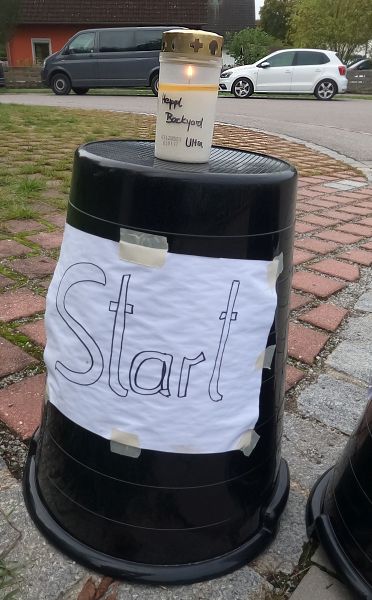 Und damit bin ich schon mitten im ergreifenden Ghost-Rider-Moment des heutigen Tages: Was die Spendenbox heute sammelt, geht an die Familie von Christian Helmberger, alias „Heppl“. Christian Helmbergers Ableben im Oktober 2023, im Alter von nur 38 Jahren, war für alle Menschen seines Umfelds, vor allem natürlich seine Frau und drei kleine Kinder, ein gewaltiger Schock. Der talentierte Ultraläufer verstarb beim Lauftraining unweit seines Wohnortes an Herzversagen. Sogar einen wie mich, der Heppl nur flüchtig kannte, ergriff Fassungslosigkeit angesichts dieser Hiobsbotschaft. Er starb gut drei Wochen nach dem ersten und zugleich letzten Seeer Backyard Ultra. Als Teilnehmer der Veranstaltung lernte ich Heppl an seinem Wohnort See (ein Dorf unweit von Kallmünz) kennen, wo er Haus und Garage als Start-/