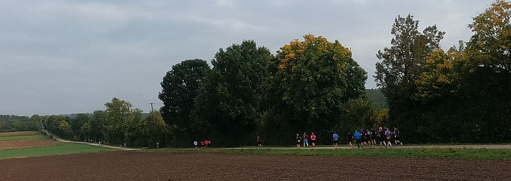 bisschen an diesem Samstag. Zwar hat das Läuferkollektiv - mitgehörten Gesprächen zufolge - beschlossen, dass es heute nicht regnen wird (ruckzuck nasse Füße im Gras wären die Folge). Die Sonne wird sich aber wohl auch nicht zeigen. Deshalb und der für mich frostigen 12°C wegen, bin ich in langer Hose und Langarmshirt angetreten - bislang die richtige Entscheidung.