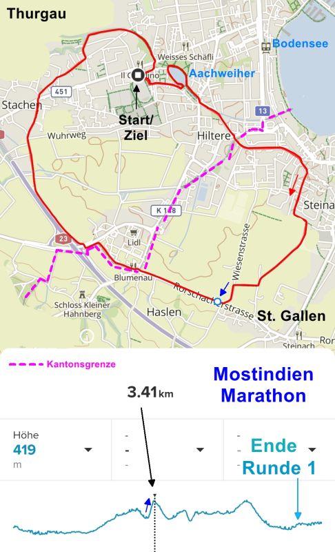 Was bedeutet eigentlich „Mostindien Marathon“? - Die Frage mag dir in den Sinn gekommen sein, ich stellte sie Christian vorab per E-Mail. Seine Antwort ließ mich schmunzeln: „Indien“, weil der Kanton Thurgau, an dessen Ostrand Arbon liegt, auf der Karte eine ähnliche Form aufweist wie der indische Subkontinent, nur, ich zitiere: „etwas kleiner“. „Most“ vor Indien, weil der Kanton Thurgau zu den Hauptanbauregionen für Äpfel in der Schweiz gehört.