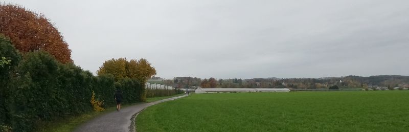 Es reiht sich Straße an Straße. Mal trabe ich auf Asphalt, dann wieder auf geschotterten Fußwegen zwischen Anwesen. Dass ich dabei die Gemeinde-, zugleich Kantonsgrenze überschreite, bleibt mir verborgen. Arbon gehört zum Kanton Thurgau. Doch schon bald betrete ich Boden der Ortschaft Steinach, die auf dem Gebiet des Kantons St. Gallen liegt. Heute und für den Lauf einerlei, gestern, an Allerheiligen allerdings nicht. Im Kanton St. Gallen war Feiertag, im Kanton Thurgau wurde gearbeitet, hatten Geschäfte geöffnet.