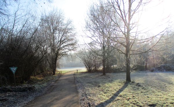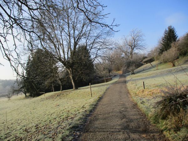 Schon fast halb elf als ich zu Runde eins aufbreche. Solo aufbreche, weil jeder Teilnehmer Start und Finish zwischen Sonnenauf- und Sonnenuntergang nach Gusto einordnen darf. Eine dicke Reifschicht überzieht Wiesen und Bäume im Körschtal. Die flach einfallende Wintersonne hat einstweilen keine Chance den eisigen Überzug zu tauen. Sie - die Wintersonne - legte übrigens das genaue Datum meines „Kaltstarts“ fest. Es gibt da diese „Weihnachtslaufserie“ mit fünf Marathons rund um und in Stuttgart, vom 27. bis 31. Dezember. Mit einem dieser Marathons wollte ich mein Laufjahr ausklingen lassen. Nur, welcher Veranstaltung sollte ich den Vorzug geben? Auf allen