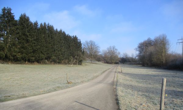 Ich plaudere „Text gebärend“ munter drauflos und erwecke damit womöglich einen falschen Eindruck: Die geschilderten Ansichten und meine Erläuterungen dazu beschäftigen mich zur Laufzeit kaum. Wahrnehmen, kurz überdenken, abhaken, weiter. Mehr Aufmerksamkeit fordert mein Innenleben, das sich weniger rosig entwickelt als das Tagesklima. Letzteres vermag die Frostbeule Udo dank konstanter Wintersonne und gottlob Windstille gut auszuhalten. Mit anderen Worten: Von anfänglichem Frösteln abgesehen komme ich mit der Kälte gut klar. Auch wenn ich die Formulierung scheue: Bedenkt man die Jahreszeit und die vor Tagen eingeflossene Polarluft, dann herrscht heute nahezu ideales Laufwetter. Alles andere als ideal ist dagegen meine Verfassung: ich komme voran, kämpfe aber gegen wachsende Widerstände. Macht nix, ich wollte es so und ich kann das.