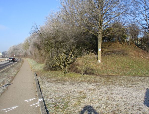 zwei Meter hohen Erdwall zwischen Büschen und Bäumen erstürmen. Für Neulinge brachte Michael Weber gleich drei Markierungen auf dem Radweg aus, um sie über die seitliche Begrenzung und wegloses Gras zu schicken. Erst dann erkennt man den Pfad nach oben. Oben angekommen spähe ich seitlich zur Hecke, denn irgendwo dort deponierte ich vorm Start meine Thermosflasche und drei Gels.