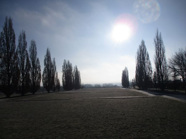 An drei von vier Seiten jogge durch das einstige Militärgelände. Zuletzt komme ich am früheren Offizierskasino vorbei und betrete die so genannte „Landschaftstreppe“. Wer zum ersten Mal vom südlichen Ende dieser beidseits von hohen Pappeln flankierten, etwa 30 Meter breiten, sacht ansteigenden Schneise gen Norden schaut, der wird mindestens überrascht sein; wird sich darüber hinaus vielleicht fragen: Wer plant, baut und bringt