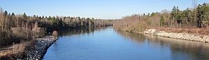 Den Lech - was er war und was er ist - muss man erläutern: Er entspringt im Herzen des Alpenhauptkamms, bewahrt bis zur deutsch-österreichischen Grenze bei Füssen noch viel von seiner Ursprünglichkeit, um dann auf 70 Stromkilometern von mehr als 20 Staustufen geknebelt zu werden. Seine wahre Natur, ein breites, von Kiesbänken durchsetztes und nach jeder Schneeschmelze neu gestaltetes Bett, widerstrebte menschlichen Interessen. Der Mensch musste sich gegen Hochwasser schützen und wollte Landwirtschaft auch in Flussnähe betreiben. Des Widerspenstigen Zähmung gelang mit breiten, betonierten Wehren, nach und nach durch Staubecken zur Stromerzeugung ersetzt. So grub sich der Lech streckenweise tief in die Landschaft und bietet alle paar Kilometer den beschaulichen Anblick eines ruhenden Gewässers. Auch wenn Schönes zu lesen und auf weiteren Bildern zu sehen sein wird, was der Lech einst war existiert nicht mehr. Aus vielen, auch jedem Naturschützer einsehbaren Gründen bleibt eine Renaturierung bis zum jüngsten Tag ausgeschlossen. Um sich am Ist-Zustand zu erfreuen, muss man verdrängen, wie sich die Natur selbst schuf und den Blick auf die fortgeschrittene Rückeroberung des Terrains durch Flora und Fauna richten.