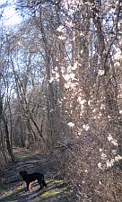 einer hier weit verbreiteten Ranke und verleihen dem Ort etwas feenhaft Mystisches. Nach enger S-Kurve schmiegt sich der Weg wieder ans Ufer. Nur ein dünner Saum Uferbewuchs trennt mich noch vom Fluss, der ab jetzt aussieht wie ein Fluss. Wo möglich, unternimmt Roxi die üblichen Blitzvisiten Richtung Wasser. In solchen Phasen vermeide ich jegliches Kommando, gönne ihren Instinkten - Laufen und Schnüffeln - nicht nur sprichwörtlich "freien Lauf". Seit Roxi sicher auf Kommandos reagiert, mag ich ihre Begleitung nicht mehr missen. Schon oft habe ich erlebt, wie quirlige Lauffreude auf vier Pfoten stumpfen Trainingstrott in ein schönes Lauferlebnis und Missmut in Lachen umschlagen ließ.