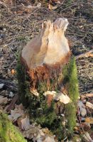 jeden Kalibers und spitz zulaufende Stümpfe säumen den Weg. Wer es zum ersten Mal sieht, kann kaum fassen wozu der possierlich aussehende Nager
