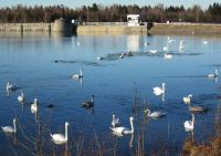 größere Ansammlung wilder Schwäne gesehen zu haben. Nach vorsichtiger Schätzung mehr als hundert Tiere. Mein Bild beschränkt sich auf einen Ausschnitt, um die vielen menschlichen Zaungäste auszublenden.