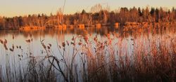 Abschied vom Lech: Ein letzter Blick über die spiegelnde Wasserfläche, auf der die Enten, beschäftigungslos dümpelnd, das Ende des Tages zu erwarten scheinen. Kahle Birkenäste auf dem nahen Inselchen spiegeln sich im See. Am jenseitigen Ufer entzündet der hereinbrechende Abend sein gelb-rotes Feuer. Herrliche Bilder! Sie versöhnen mit allem, sogar mit der Unwiederbringlichkeit des Lech-Urzustands. Und die Schwäche in meinen Beinen verliert völlig an Bedeutung.