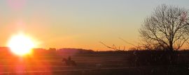 Noch drei Kilometer. Vielleicht gelingt mir noch ein beeindruckender Schnappschuss vom Sonnenuntergang über dem Handtuchwald. Just als ich den Auslöser drücke, vernehme ich wilden Hufschlag und angestrengtes Schnauben. Nein! Es sind nicht die angreifenden Heerscharen der Magyaren! Ich banne die forsch vorbei galoppierende Reiterin ungewollt mit in meinen Kameraspeicher. Die letzten Meter fallen mir schwer. Roxi tippelt dafür unbeschwert vor mir her. Ich bin wirklich fix und fertig von 31 Kilometern, aber zufrieden und erfüllt wie selten. Mehr kann man in knapp drei Laufstunden kaum sehen, erleben und genießen. Sicher drückt mein Gesicht nur Erschöpfung aus, doch innerlich lache ich mit jeder Faser.