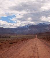 die Uhr. Noch etwa zehn Minuten bleiben mir zum Entdecken, dann sollte ich umkehren. Die Straße hebt sich ein weiteres Mal, schneidet zuletzt durch einen rotbraunen Riegel. Dahinter wird der Blick freier. Das Tal weitet sich immer mehr. Plötzlich zweigt eine schnurgerade Piste nach Südosten in Richtung der hohen, schneebedeckten "La Sal Mountains" ab. "Onion Creek 2" steht auf dem kleinen grünen Wegweiser. Ich werfe einen sehnsüchtigen Blick in die lockende Ferne und ... bringe mich mit einem Satz vor einem wild heran röhrenden Truck in Sicherheit. Der weicht dann zwar großräumig aus, doch das weiß man schließlich nicht vorher.