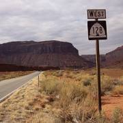 Alles robuste Wirklichkeit. Zum Beweis muss mich niemand zwicken. Harter Asphalt unter den Sohlen und nach fast fünfzehn Laufkilometern müde, hie und da zwickende Beine legen hinreichend Zeugnis ab. Fünfzehn Kilometer im Bundesstatt Utah, United States of America, auf der Straße 128, die Hälfte Richtung "East", dann zurück auf "128 West". Klingt