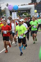 Auf Kraxi brauche ich nicht lange zu warten und er taucht auch nicht überraschend vor mir auf. Das Erscheinen des "Pacemaker 3:30 h" konnte ich mir ausrechnen. Richtig: Der Steiermärker hat den weiten Weg auf sich genommen, um hier Marathon zu laufen. Aber nicht nur hier. Am gestrigen Samstag gewann er mit 2:52 h bereits den Bodensee Marathon in Kressbronn. Wie bitte? Ja klar ist Kraxi verrückt, aber er ist eben Kraxi ... Arbeitsteilung: Udo schießt eine Fotoserie und Roxi intensiviert ihr Fiepen. Ein kurzer Wink, ein Lächeln, dann ist der Steiermärker mit seiner Gruppe vorbei.